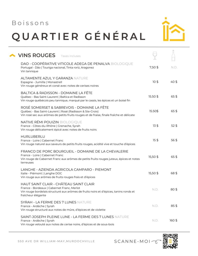 Fermeture selon l’achalandage et la programmation, consultez notre page Facebook pour découvrir notre horaire d’ouverture et les dernières nouvelles sur le resto!